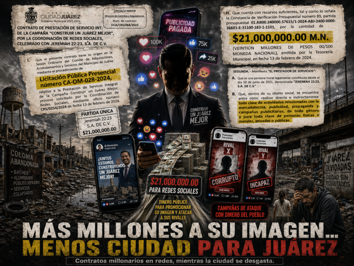 Tres contratos, millones de pesos y una misma lógica: construir percepción mientras Juárez sigue esperando resultados que se vean en la calle, no en la pantalla.